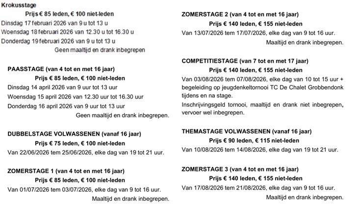 Met betrekking tot onze zomerstages is het ook steeds mogelijk om voor halve dagen (keuze uit voormiddag of namiddag) of voor bepaalde hele of halve dagen deel te nemen, de prijs wordt dan pro rata berekend.